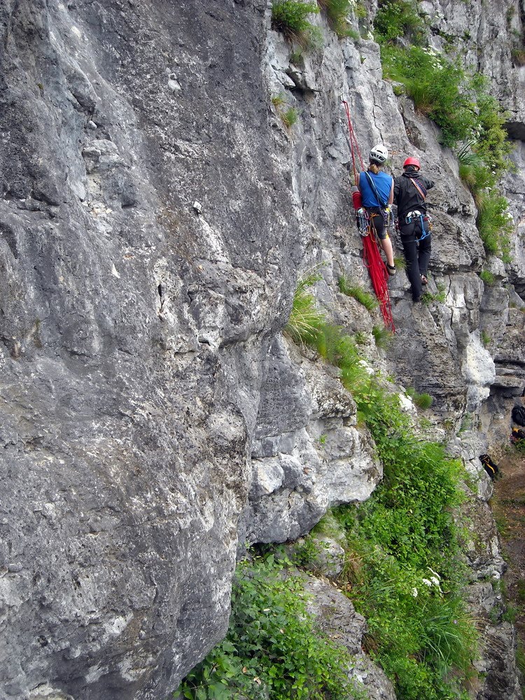 Siamo arrivati alla terza uscita e stavolta un cielo grigio sembra volerci rovinare i piani. Dirigiamo verso Travesio e la falesia dei Cuargnui a Castelnovo del Friuli. Il tempo sembra reggere e ci concede la mattinata per svolgere almeno metà del programma in ambiente.