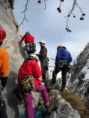 Prima ci ha fermato la neve, negandoci la gioia di tornare, dopo diversi anni, in Piccole Dolomiti, poi il meteo incerto ci ha fatto desistere da una puntata ad Arco. Poi ci si è messa di mezzo l’influenza (suina?) a decimare le forze, fatto sta che in sette eravamo presenti all’appello!