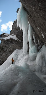 Bella Giornata dal punto di vista metereologico e anche poco affollata di iceclimbers. La giornata è stata piena: dalle 9 di mattina fino al tardo pomeriggio si sono ripetute le salite.
