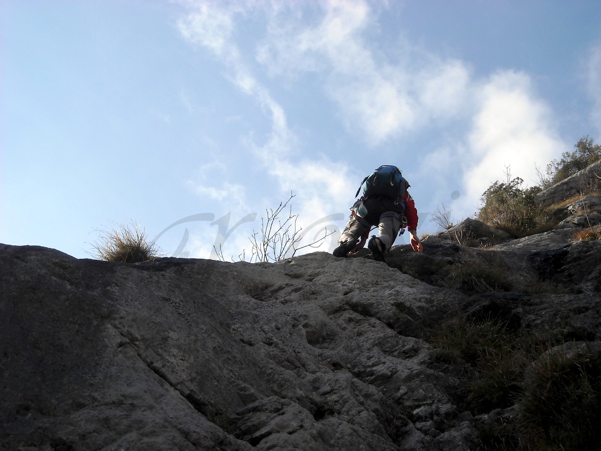 Capita la lezione, l’indomani ci si sveglia di buon ora e la parete del Dain è nostra. Partiamo veloci ad aprir le danze sui ripidi calcari, mentre dietro di noi si accodano un paio di cordate.